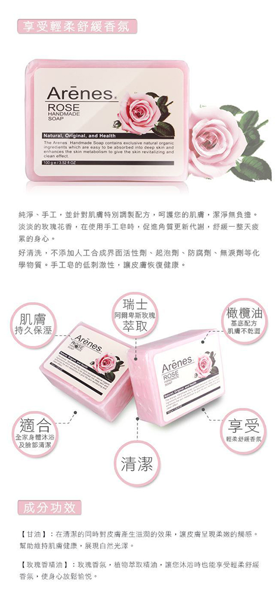Arenes玫瑰香氛植萃手工皂100g/顆