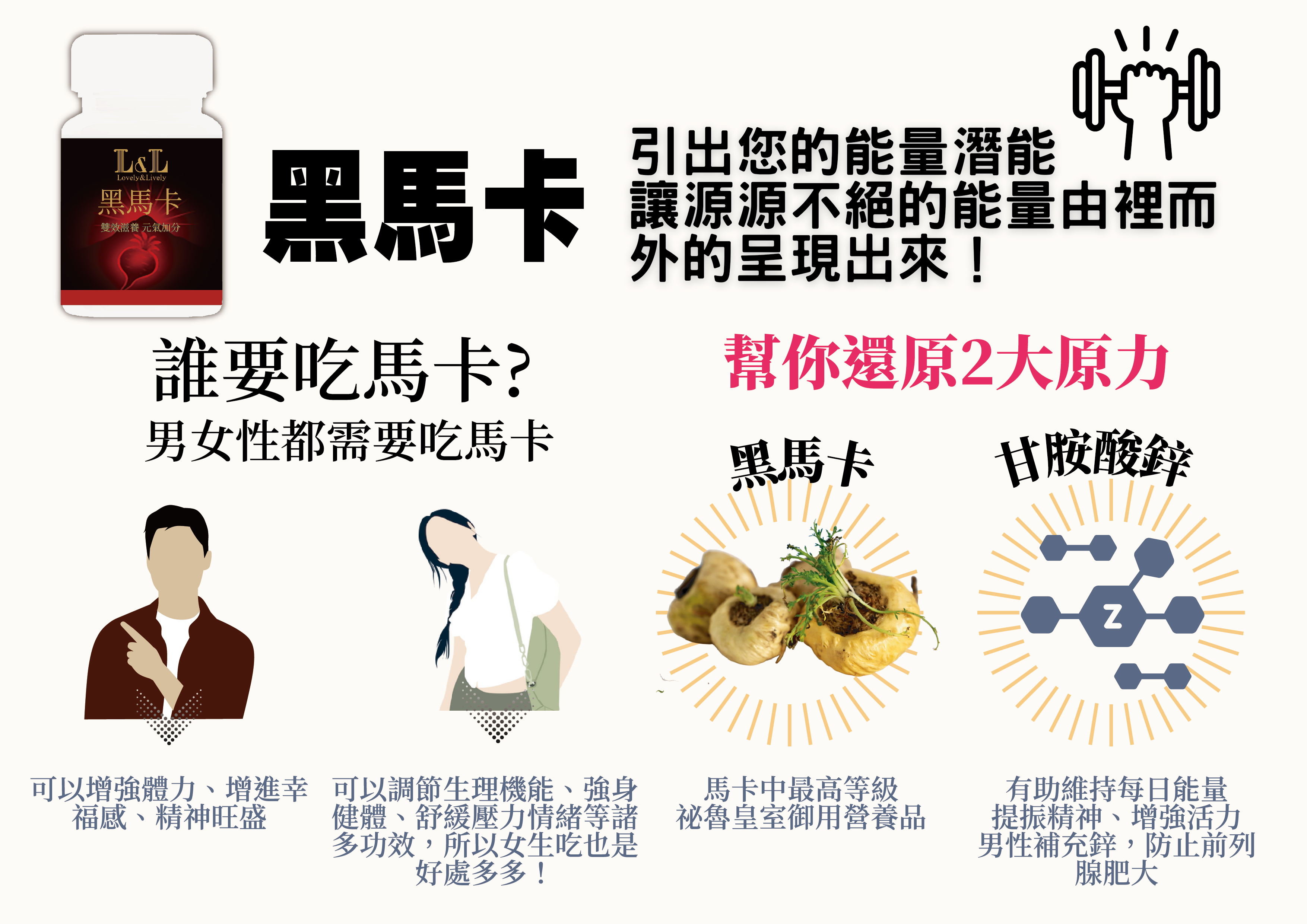 成 分:黑馬卡萃取物、甘胺酸鋅